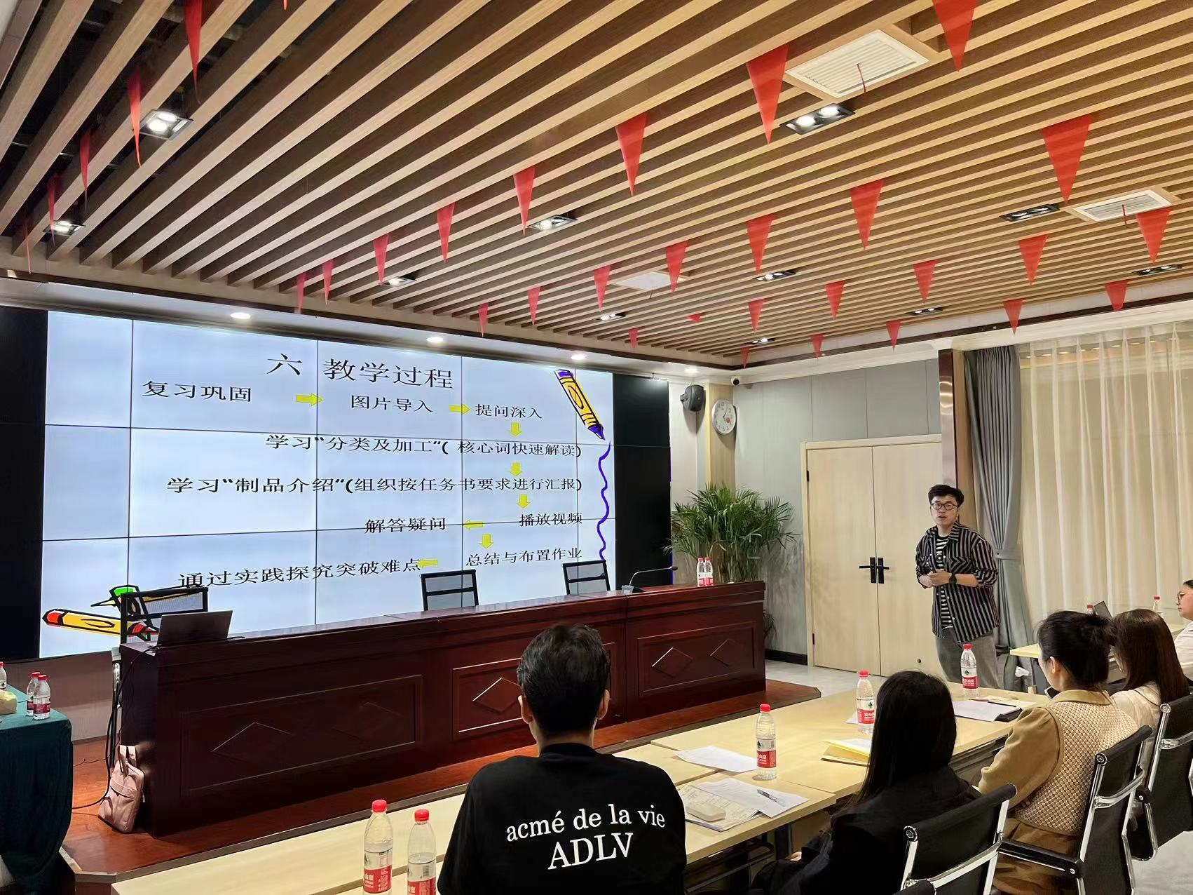 在上午的说课阶段,6位青年教师以昂扬的精神、饱满的激情在本次比赛中惊艳亮相,他们将个人风采与综合素养展现得淋漓尽致,那慷慨激昂的语言表达、美观丰实的板书设计、独具匠心的无生说课、扎实有效的课标解读赢得了评委们的高度赞赏。