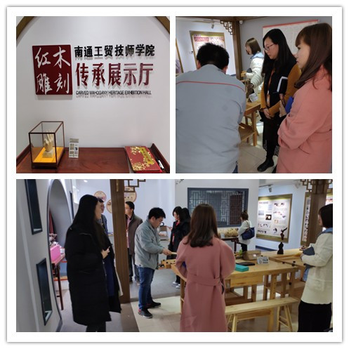 汇报结束后,我校团委部门实地察看了南通工贸技师学院学校心理咨询室、团学办、宣传栏以及社团红木雕刻室、校史馆、教室等场所和设施。最后,两校团委部门希望能以此行为契机,继续深化两校间的交流。