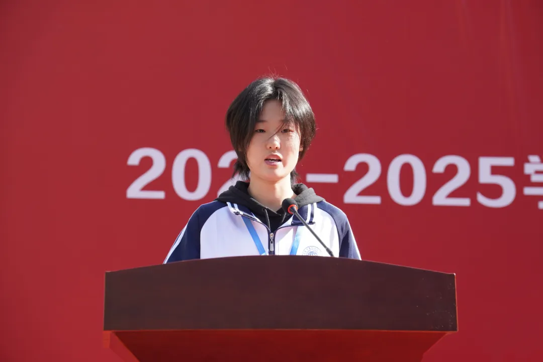 “祝贺今天获得表彰的同学,并鼓励那些今天没能走上领奖台的同学!并告诉同学们在学习的过程中,要端正心态,明确方向,稳健步伐,勇往直前。点滴积累,终能绳锯木断,水滴石穿。因为走得最远的人往往不是走得最快的人,而是能够不停走路的人,这就是坚持的力量!”
