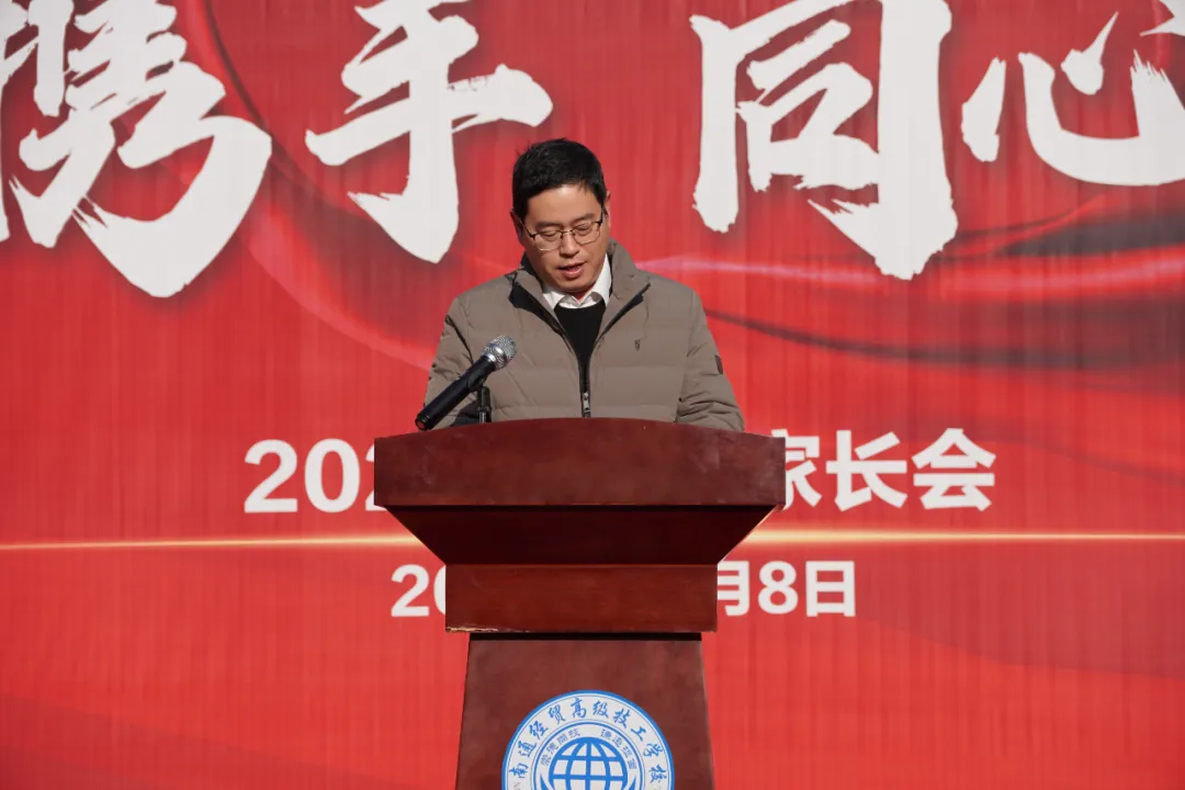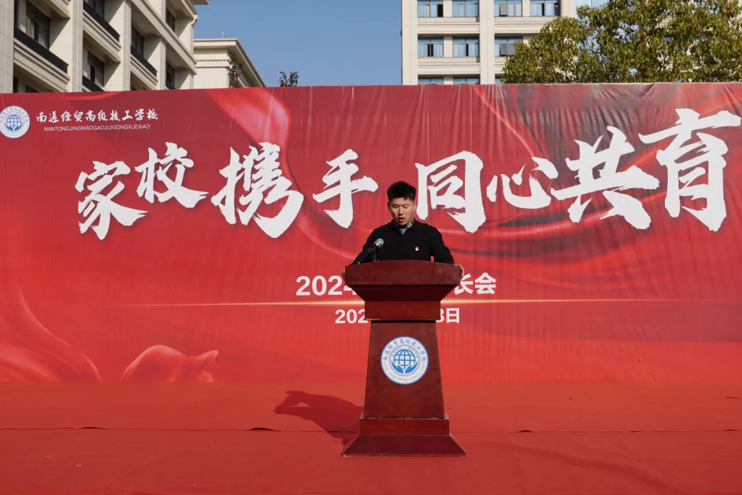 为进一步加强家校沟通交流,更好地了解孩子在校的学习和生活情况,促进学生健康成长和全面发展,共同为学生营造一个和谐、积极、健康的学习和生活环境,2024年12月8日下午,南通经贸高级技工学校召开了以“家校携手 同心共育“为主题的2024级新生家长会。海门森达装饰材料有限公司总经理助理姜世聪、常务副校长朱峰伟、副校长徐海江、许静、黄华及各系部主任参加主会场的家长会,家长会由党政办主任李聪聪主持。