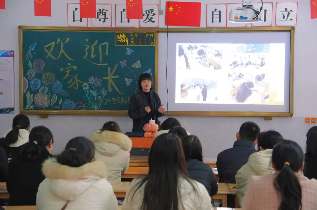 常务副校长朱峰伟介绍了学校的办学及发展情况,尤其是24年学校在诸多方面取得的成绩,他指出今天召开家长会不仅是为了向各位家长汇报学校教育教学工作情况,共同研究教育教学问题,征求家长对学校工作的意见和建议,更希望得到各位家长对学校工作的理解和支持,召开家长会只是家校联动的开端,希望广大家长今后多向学校提宝贵意见,多和班主任交流孩子情况,多花点时间关心小孩身心健康和职业规划,多关心学校的动态和发展。朱峰伟谈到25年学校将以“实行精细化管理,办好精品式学校”为基准,以提高学生满意度为动力,以办好一流高级技工学校为目标,开拓创新、团结实干、奋发有为,不断提高广大师生的凝聚力、执行力和战斗力,引导广大学生牢固树立“经贸是我家”、“在经贸有困难找老师”、“经贸的荣誉和声誉需要大家维护”等思想格局。希望广大家长和我们学校一道,心往一处想,有困难、有资源、有建议、有方法都可以告诉我们,我们共同营造更好的育人环境和氛围,把学校办好,把师资队伍带 好,把学生培养好,把既定目标完成好,让家长满意,让社会放心。