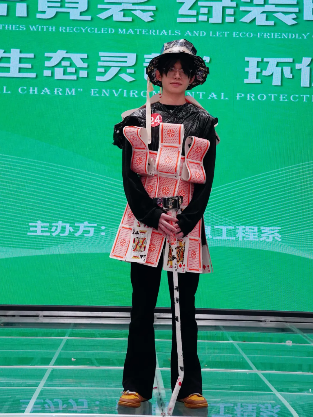 服饰在他们的演绎下,仿佛焕发出了新的生命。每一件作品都承载着设计师的心血与创意,而模特们则是这些作品的最佳诠释者。她们的步伐坚定自信,仿佛每一步都在书写着时尚界的辉煌历史。她们的眼神充满魅力,仿佛在诉说着每一个设计背后的故事。同学们“变废为宝”,利用各种废旧材料设计制作款式各异的表演服装并进行舞台展示,大赛丰富了同学们的课余生活,激发了同学们的创造力,提高了同学们的环保意识,增强了每一位同学“珍惜可利用资源,保护环境,创造和谐社会”的意识。