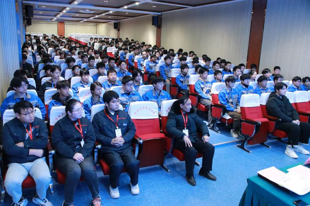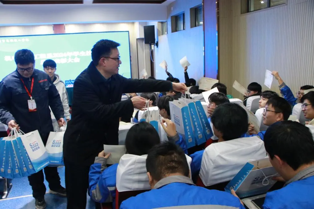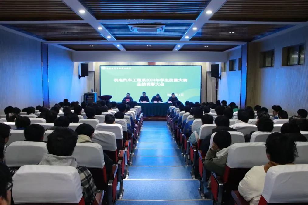 2025年1月9日机电汽车工程系学生专业技能大赛总结表彰大会在教学楼思政大讲堂顺利召开。会议由主任助理王海深老师主持,机电汽车工程系主任金状、教学副主任尹亮、特邀嘉宾:南通海门森达装饰材料有限公司人力资源部俞正华经理、大赛评委老师、参赛选手以及学生代表参加会议。