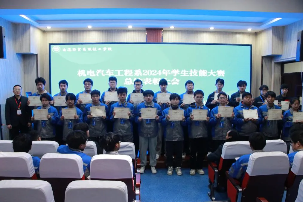 他们用实力证明了自己,不仅赢得了荣誉,更为我们的专业树立了新的标杆,激励着每一位同学不断前行,追求卓越。在每一次掌声中,我们听到了坚持与梦想的声音;在每一份荣誉背后,我们看到了努力与汗水的结晶。今天,我们庆祝的不仅仅是胜利者,也是每一位参与者的勇气与决心,更是机电汽车专业无限可能的未来。