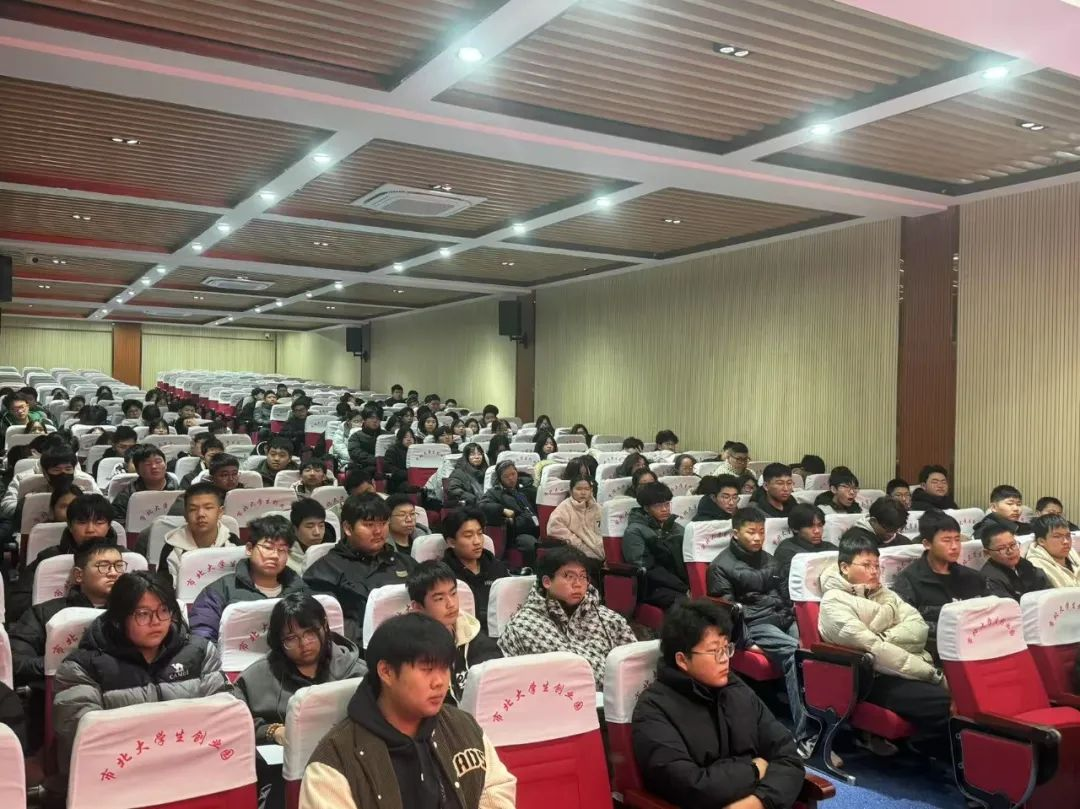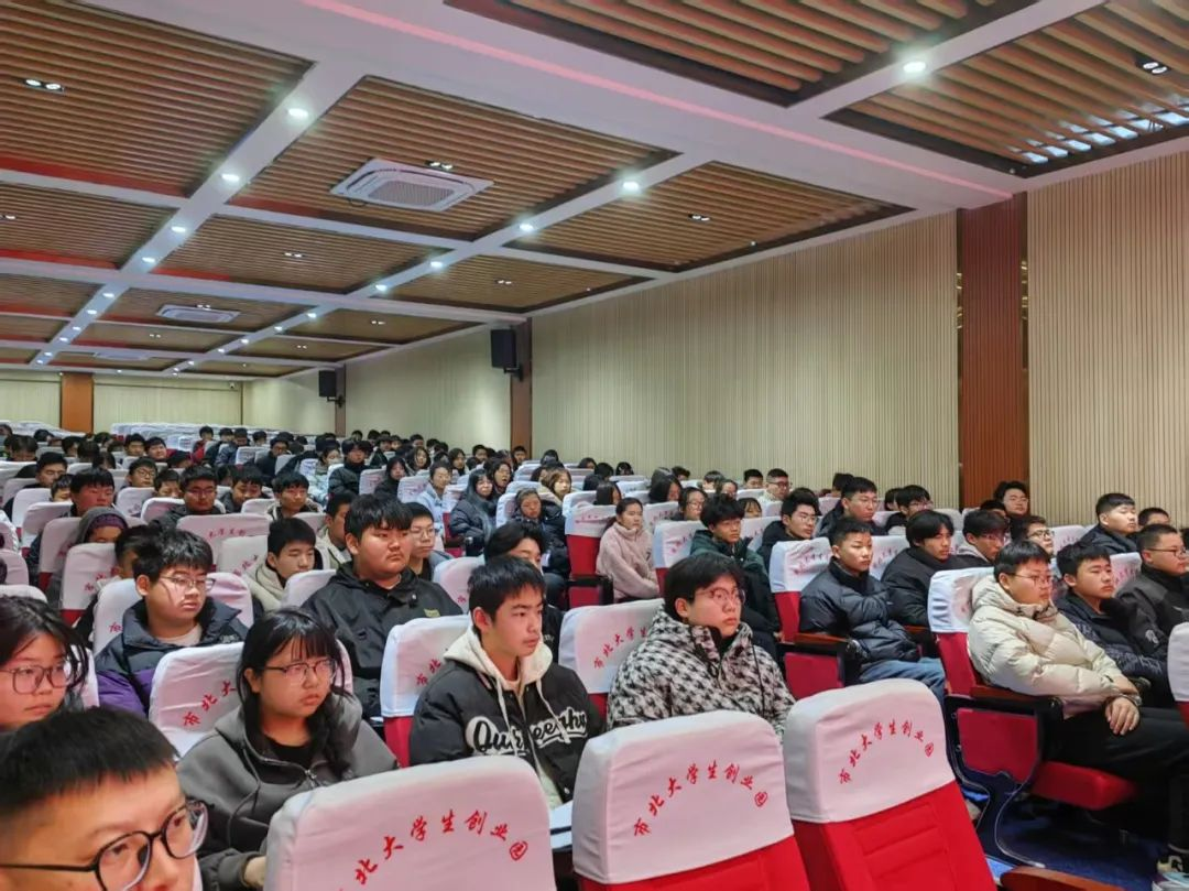 首先,常务副校长朱峰伟介绍学校的基本情况,涵盖专业建设、师资队伍建设、社团活动及人才培养等多个方面。回顾学校的发展历程,希望大家在面对困难时,始终保持 “永不言败”的精神。同时灌输“英雄不问出处”的思想,引导大家不抛弃不放弃,只要脚踏实地,努力奋斗,都有机会在这片土地上绽放光彩。接着,常务副校长朱峰伟与参会学生进行了互动,探讨未来的职业规划是什么?在南通经贸想要实现什么?相关学生谈了自己的想法。