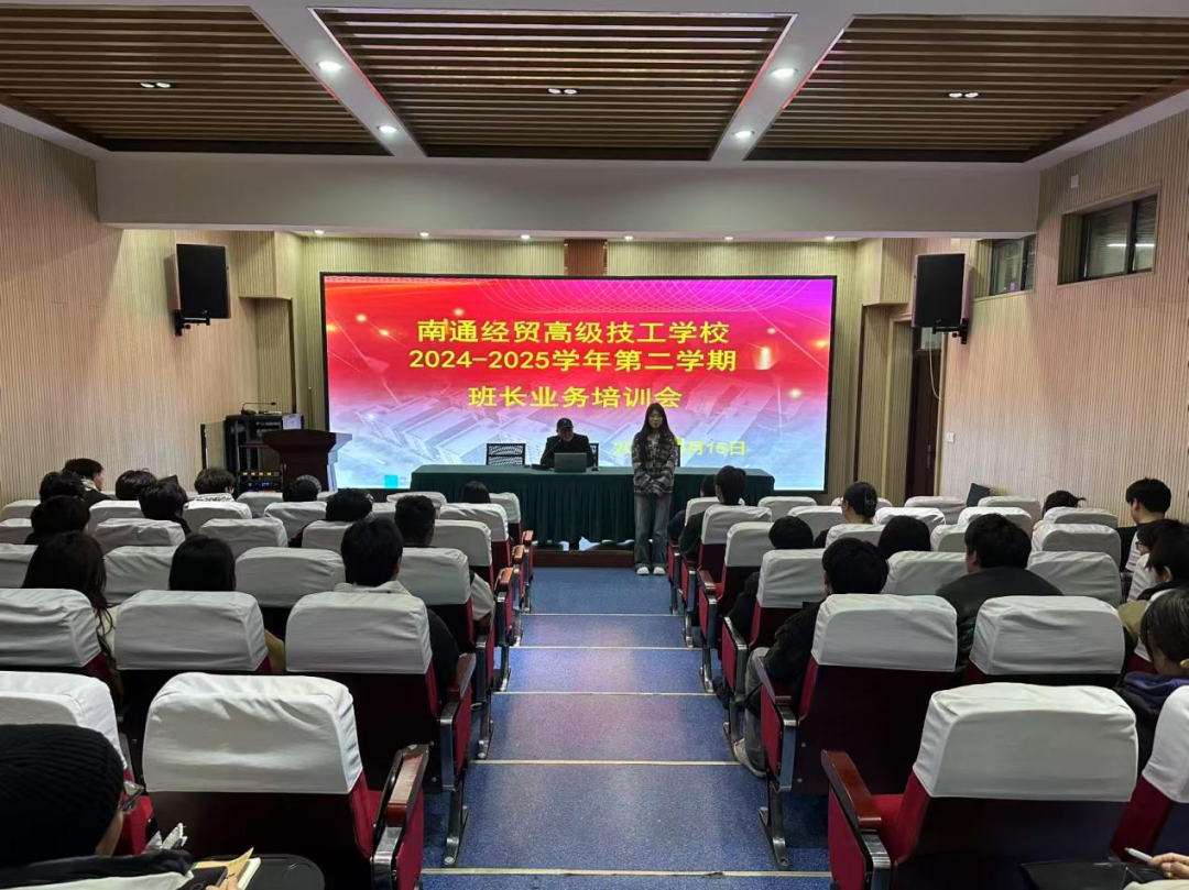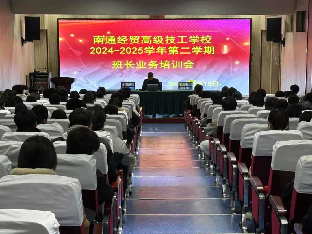 南通经贸高级技工学校期望班长们能以更饱满的热情和更专业的能力投入班级工作,为营造积极向上的校园氛围贡献力量,引领全体同学在学业与成长道路上携手共进,共创人生辉煌,共创经贸辉煌。