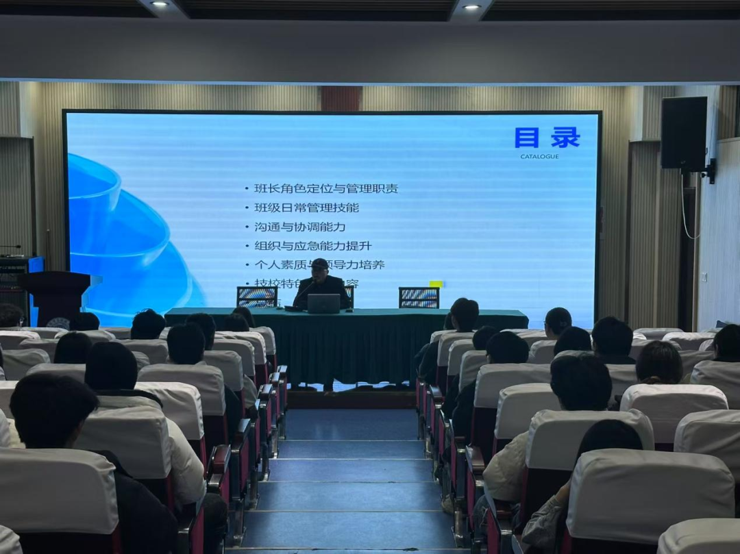 此次培训,徐校长围绕班长角色定位与管理职责、班级日常管理技能、班长沟通与协调能力、班长组织能力与应急处置、班长个人素质与领导力培养、技校特色管理内容等方面展开。培训伊始,徐校长强调了班长在班级建设中的重要作用,鼓励大家在实践中锻炼领导力,积极服务同学,做好经贸的影子和其他同学的镜子。随后,围绕班级管理的核心板块展开详细讲解,通过案例分析等形式,引导班长们思考如何处理常见问题,提升班级凝聚力。