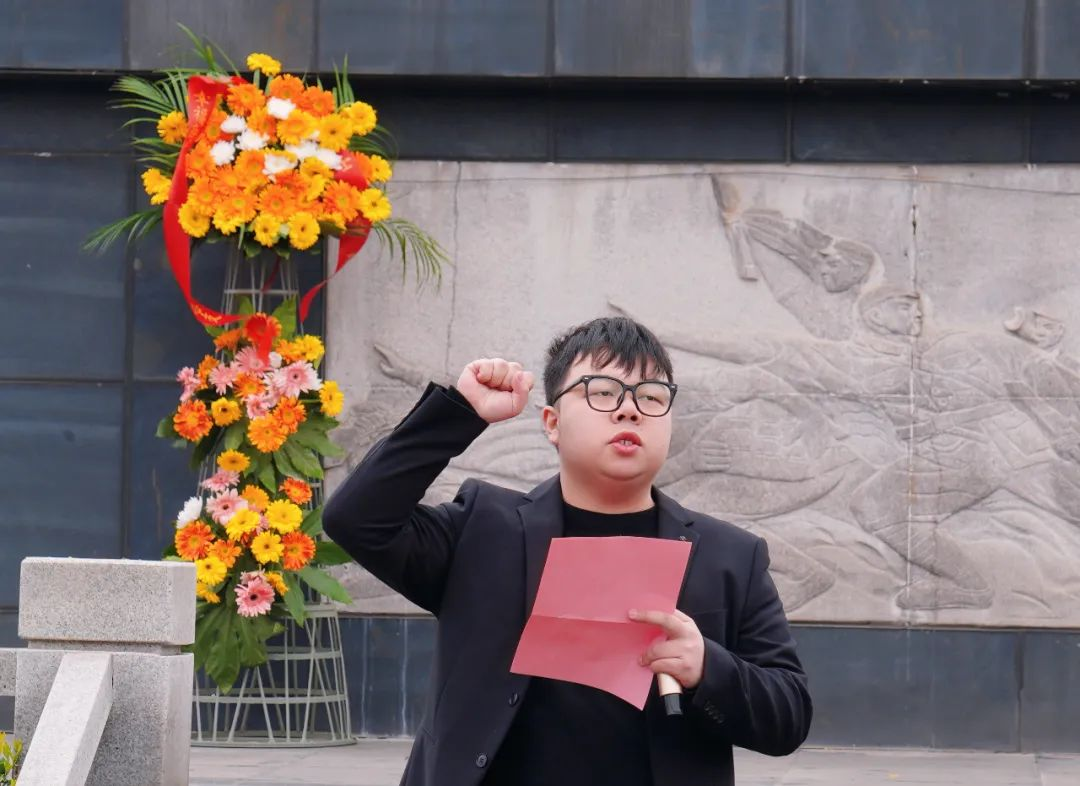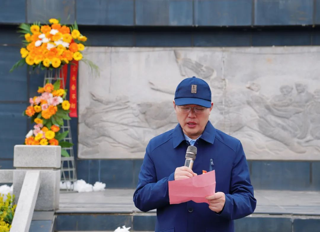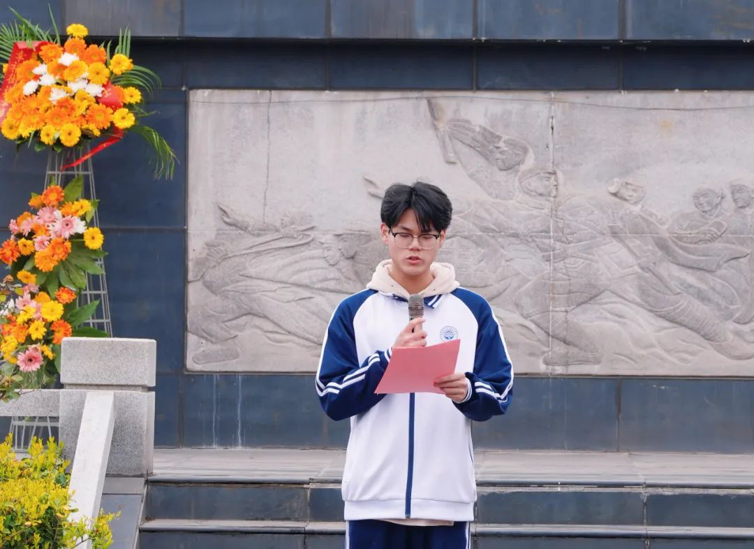 学工校长徐海江讲话:“今天我们怀着崇敬之心缅怀先烈,铭记他们用生命铸就的民族精神;作为新时代的接班人,我们要珍惜幸福生活,肩负历史使命,用实际行动传承红色基因,报效祖国!”
