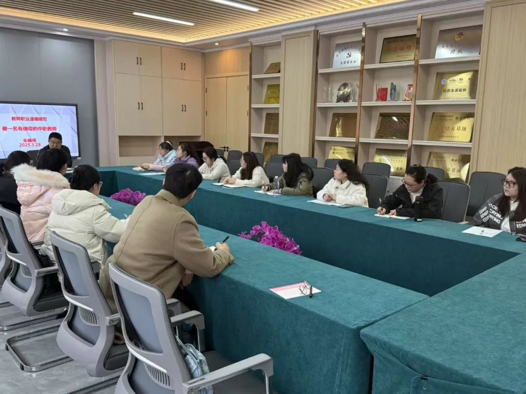 与会教师就教师职业道德规范建设及如何做好一名中职教师进行了交流与讨论。本次专题培训进一步提升了新入职员工的政治站位和担当意识。