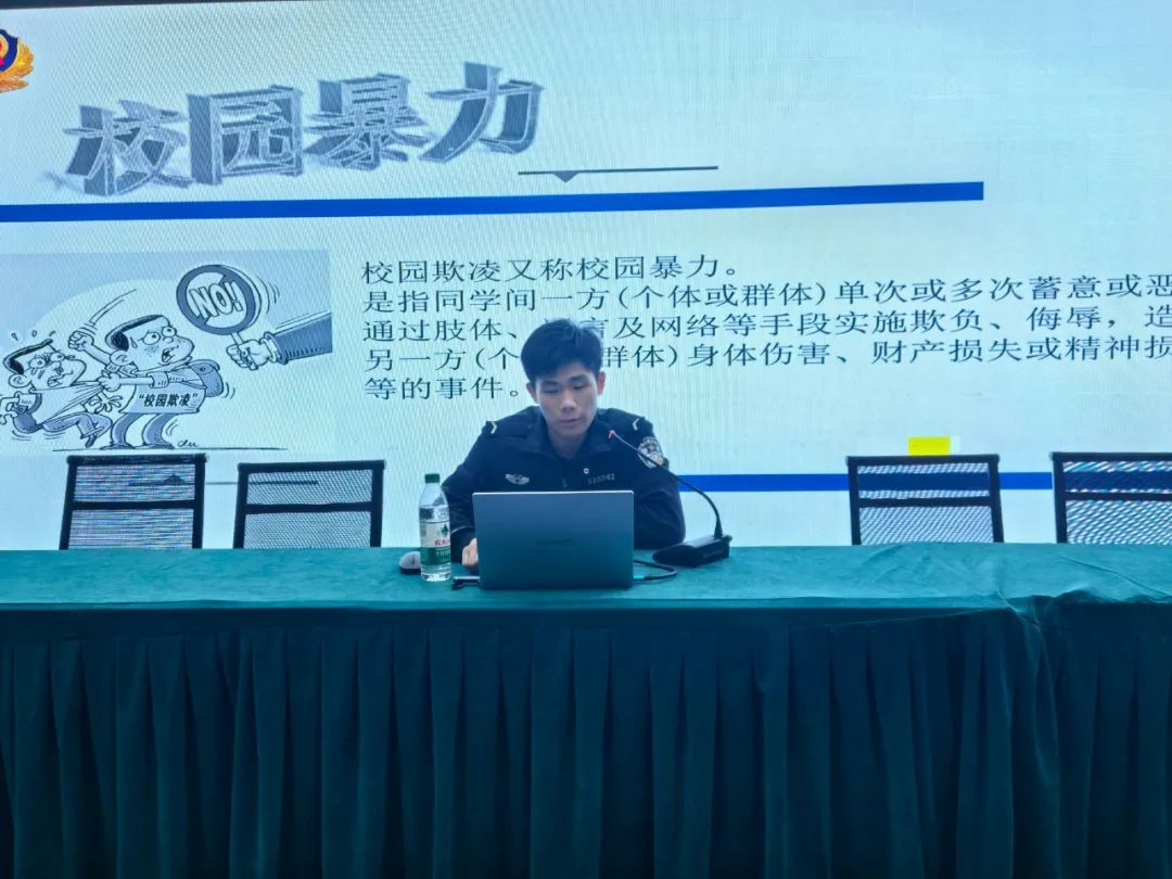 崇川公安分局唐闸派出所仲建宇和沈屹博警官分别在两个会场共11场次从防范校园欺凌、防范极端行为、预防电信网络诈骗、抵制邪教危害、拒绝网络谣言五个方面详细讲解了相关法制安全方面的知识,他们结合校园实际案例和社会热点事件,贴近实际、用生动的语言和丰富的案例为学生们深入浅出地讲解了法律知识,随着一阵阵的掌声,本次法制安全宣传周活动于4月1日圆满落下帷幕。