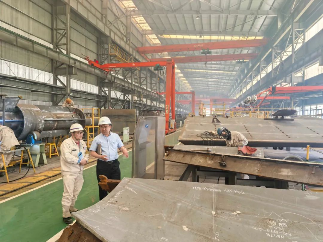 随后,朱峰伟一行深入企业生产车间开展实地调研,重点考察了智能焊接、船舶管系装配等核心工艺流程。双方围绕"产教融合赋能船舶工业升级"主题展开深度磋商,就开发"订单式"蓝领人才培育体系等校企合作项目达成初步意向。