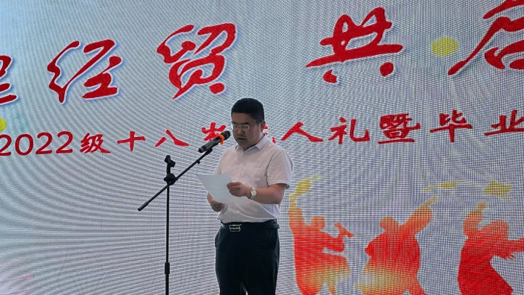 常务副校长朱峰伟代表学校向迈入成人行列的学生表示热烈祝贺,并向教师致以敬意与感谢。他向学生们提出三点期望:一是传承工匠精神,筑牢“绝知此事要躬行”的职业根基;二是感恩成长历程,铭记“吾将上下而求索”的责任担当;三是涵养家国情怀,坚定“千磨万击还坚劲”的时代使命。他勉励学子们牢记誓言,以梦为马,不负韶华,书写人生华章,祝愿同学们学业有成、未来可期。