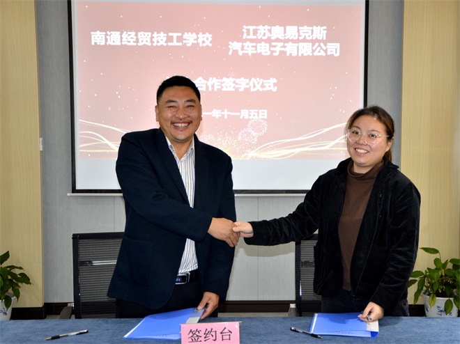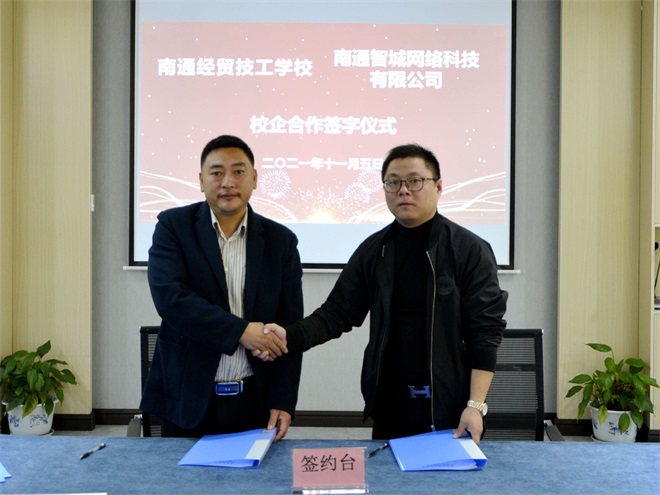 龚如锋主任代表南通经贸技工学校与市北科教产业园园区内六家企业签订校企合作协议。