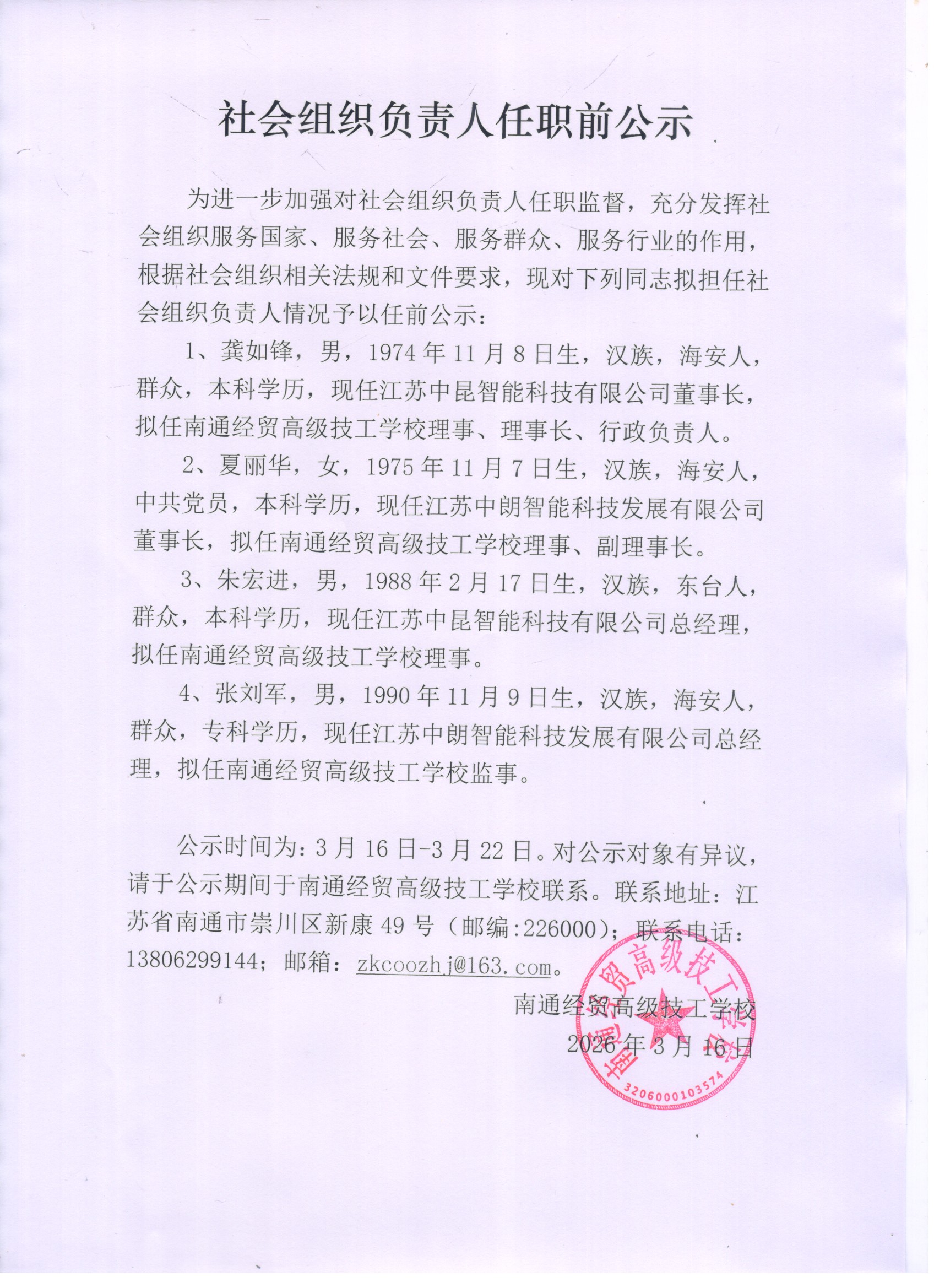 社会组织负责人任职前公示