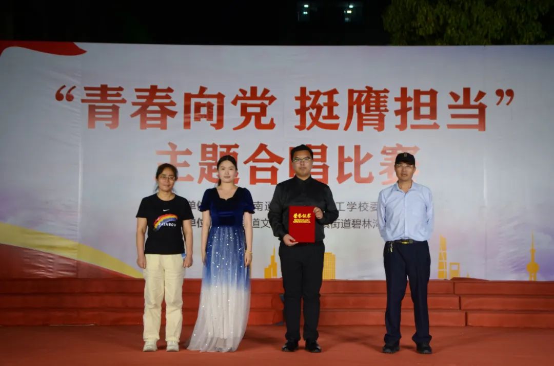 红歌代代传、歌声唱祖国,为迎接“七一”党的生日到来,重温党的光辉历史,6月17日我校与唐闸街道碧林湾社区共同举办了“青春向党 挺膺担当”红歌合唱比赛。