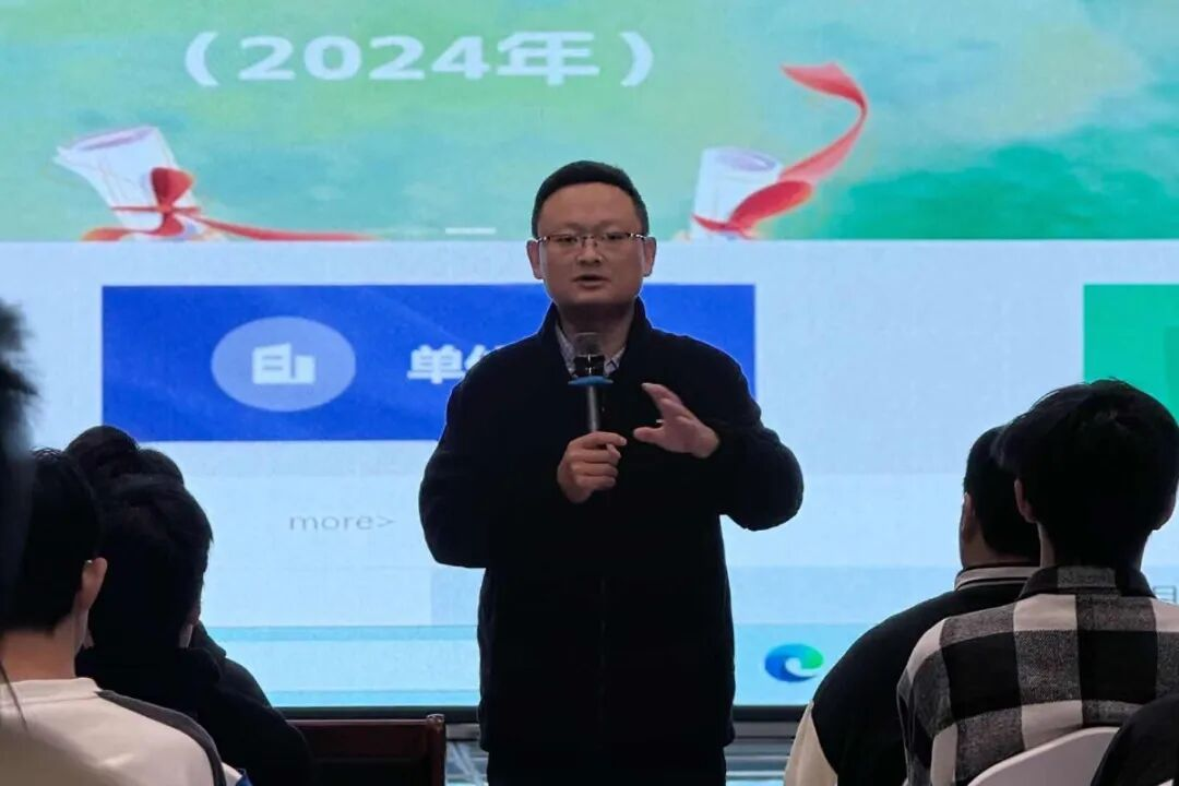 教务部部长张越峰聚焦生涯规划与求职技巧,从自我定位、目标设定、行动策略三大维度展开分享,指导毕业生设计撰写简历、做好求职面试准备。在简历优化指导环节,他从企业招聘视角出发,指出毕业生简历中常见的误区,详细讲解了如何打造一份“针对性强、说服力足、辨识度高”的优秀简历。